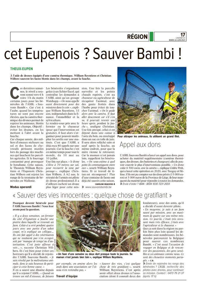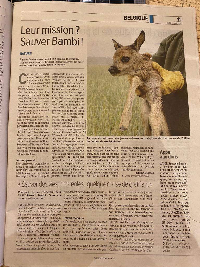 Sauvons Bambi dans la presse Nord Eclair Sudpresse - Namur DH Commune d'Awans Vedia Animalia DH Mons Borinage Matele - Yvoir WDR .DE BRF Emission: Le jardin Extraordinaire Sudpresse - 7 Dimanches Vers l'avenir RTL Luxembourg RTC liège L'avenir Vervier TV LUX JT RTBF 2021 RTL Info RTBF: Le Jardin Extraordinaire